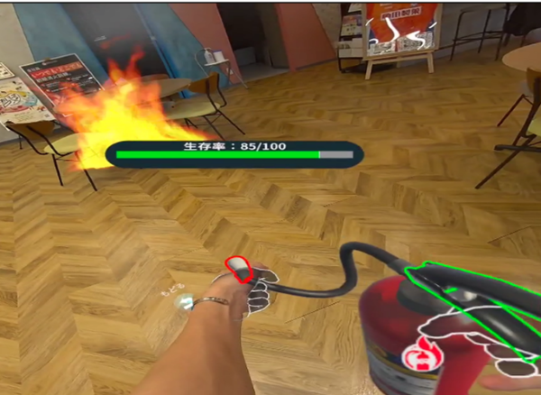 現実と仮想空間を融合させるクロスリアリティー(XR)技術を活用し、仮想の炎と消火器操作を組み合わせたリアルな消火体験を提供します。まるで実際に火を消すような臨場感のある体験を通じて、防災意識の向上を目指します。