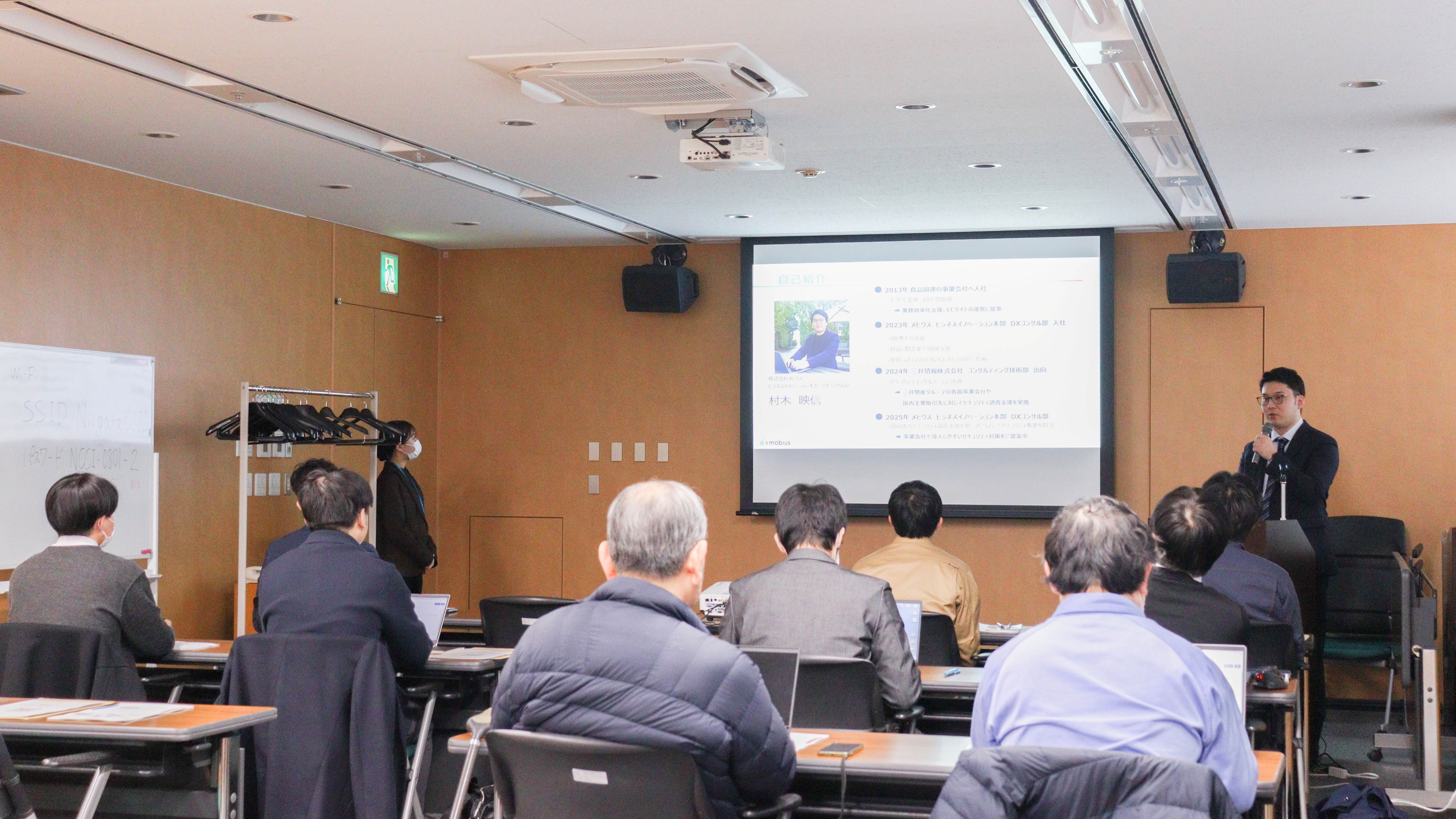 株式会社メビウス(本社:新潟県新潟市、代表取締役社長:加藤 幸久、以下「メビウス」)は、12月10日(水)、新潟商工会議所主催の「ASMを活用したサイバーセキュリティリスク対策セミナー」に登壇し、ビジネスイノベーション本部の村木が講師を務めました。